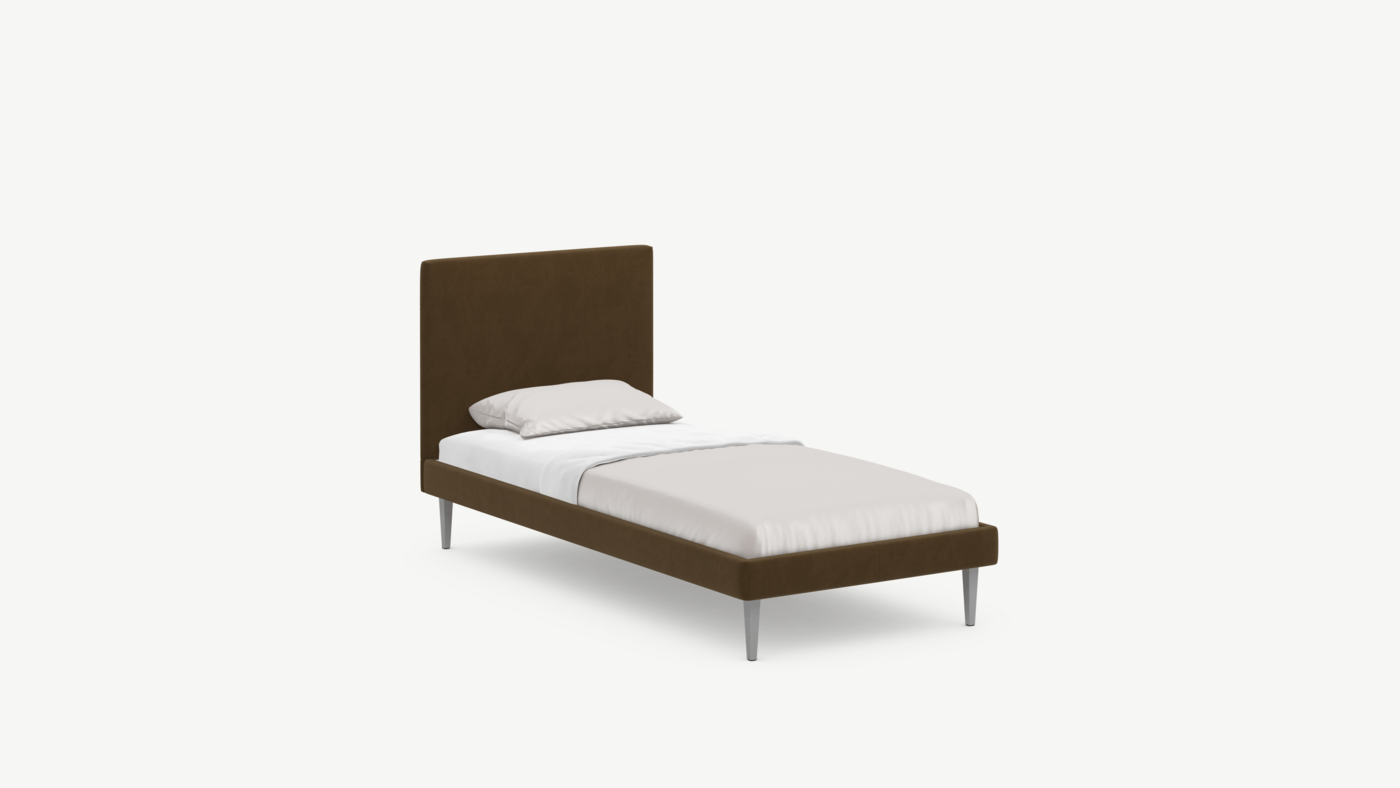 Кровать MOON FAMILY 1256 демонстрирует безупречный баланс изящных пропорций. Лаконичное изголовье, узкие царги и высокие опоры создают эффектный образ, привносящий в пространство спальни стильный и яркий акцент.