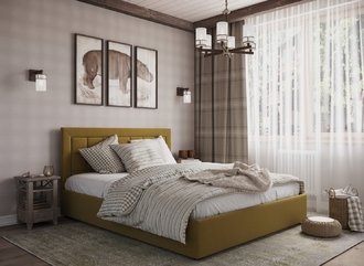 Стежка помещена в центр изголовья и обрамлена, словно картина. Объемные царги становятся гармоничным дополнением образа и завершают цельную фигуру кровати.