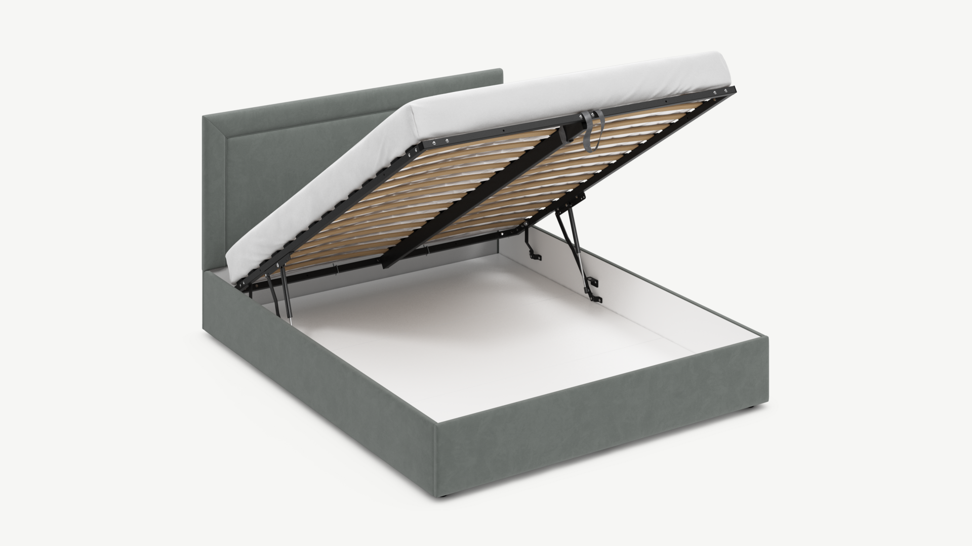 - Скрытая под основанием вместительная емкость без внутренних перегородок позволяет использовать всю площадь подкроватного пространства для хранения вещей.