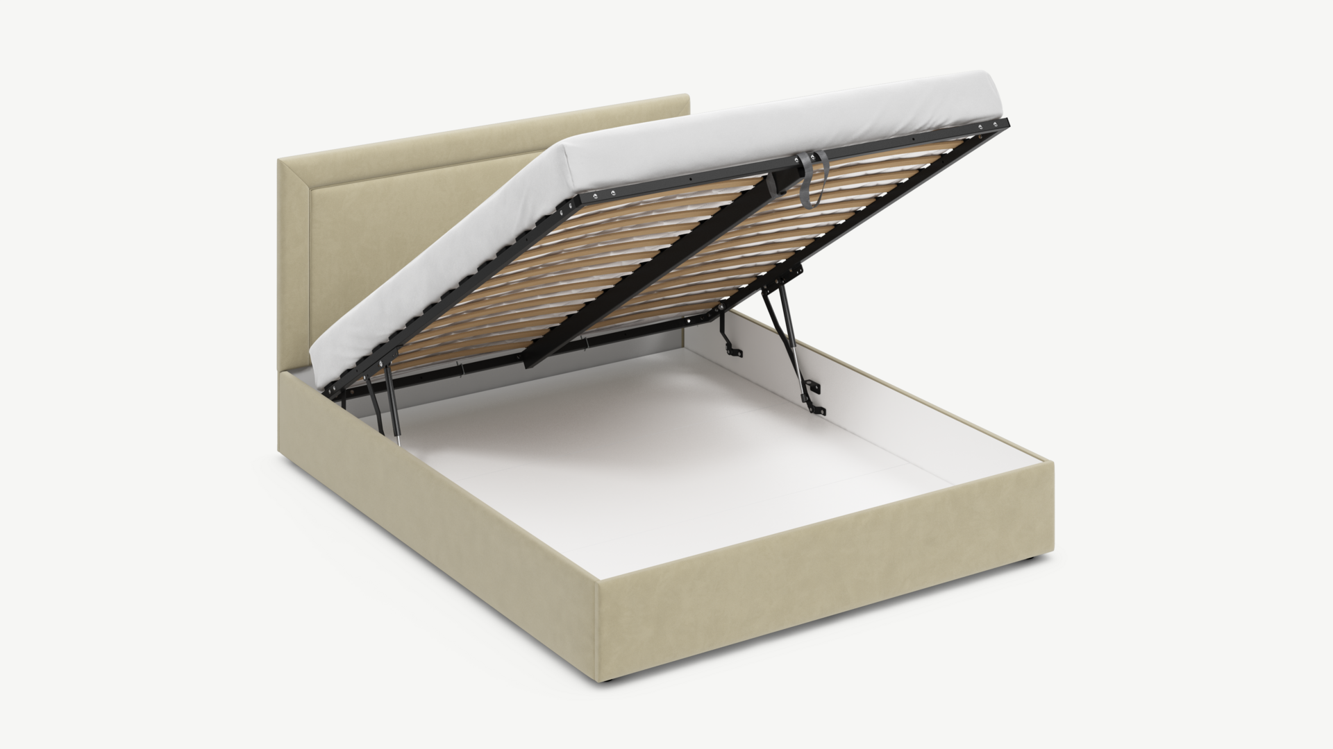 - Скрытая под основанием вместительная емкость без внутренних перегородок позволяет использовать всю площадь подкроватного пространства для хранения вещей.