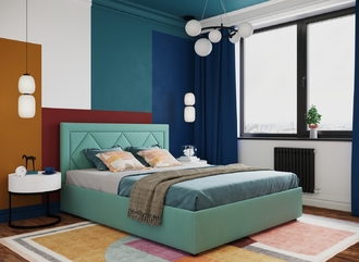 Фактура обивочного материала подбирается дизайнерами с учетом технологических и стилевых особенностей кровати.