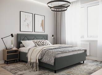 Фактура обивочного материала подбирается дизайнерами с учетом технологических и стилевых особенностей кровати.