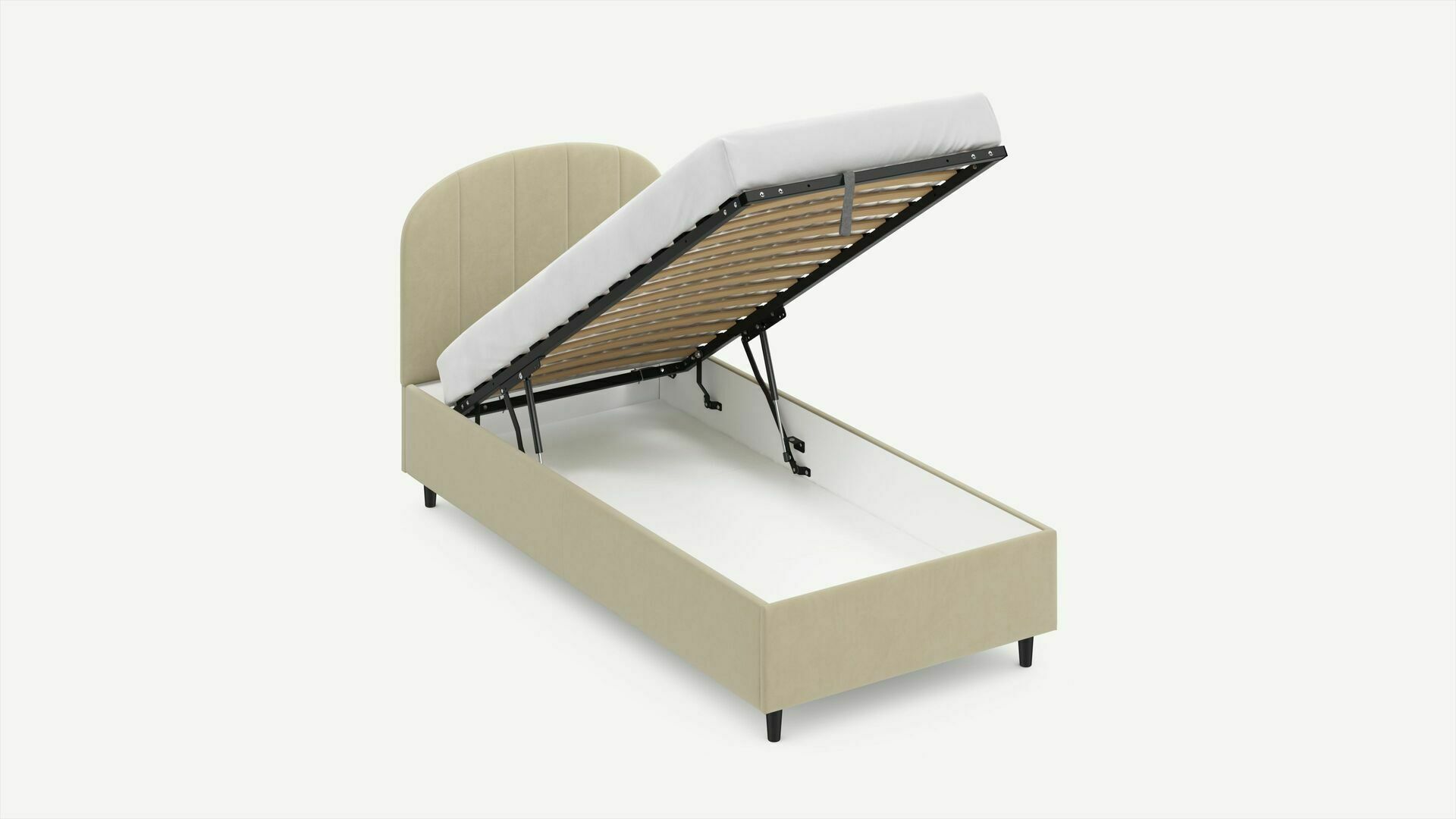 • Скрытая под основанием вместительная емкость без внутренних перегородок позволяет использовать всю площадь подкроватного пространства для хранения вещей.