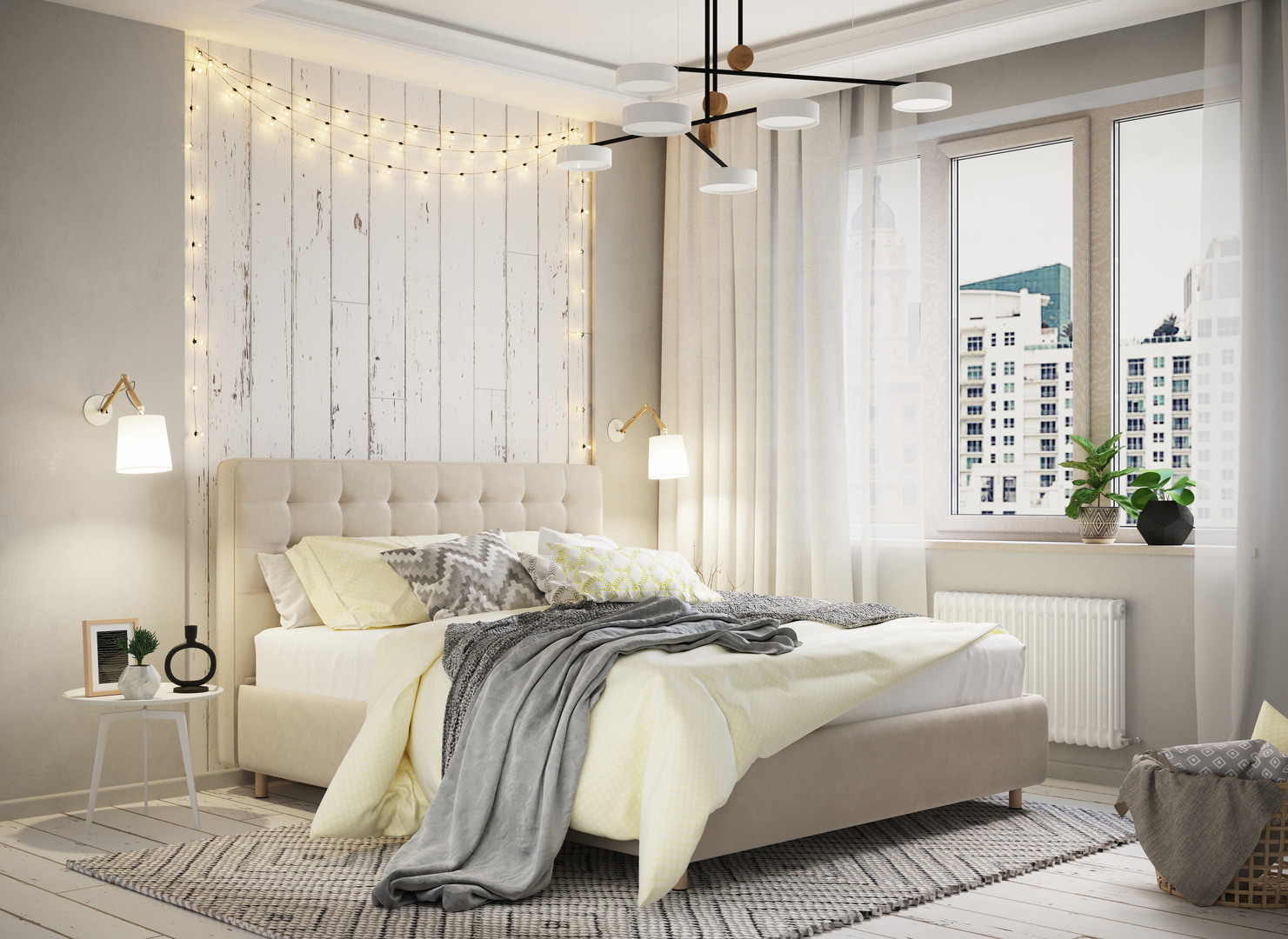 Творчески завершить образ спальни помогут дополнительные аксессуары: например, декоративные подушки-валики MOON 1165, прикроватные тумбы, банкетки, а также покрывала-саше.