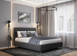 Оформите образ кровати, выбирая обивочный материал, который подчеркнет звучание Вашей спальни и отразит Ваш вкус. Обратите внимание на однотонный гладкий велюр, который усиливает объемную фактуру стежки.